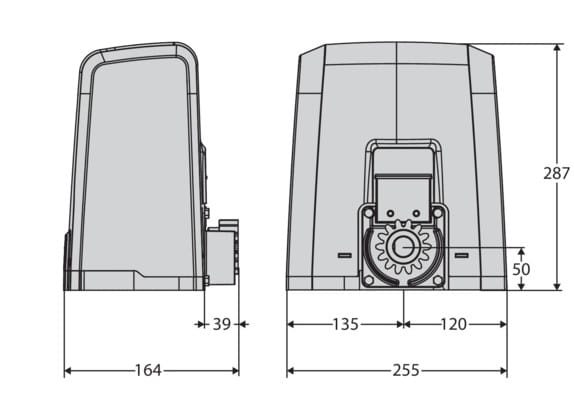 Operatore 24 V per cancelli scorrevoli fino a 600 kg di peso. Velocità anta 12 m/min.