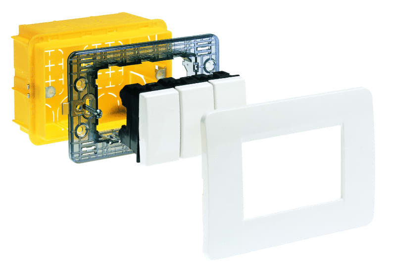 scatola da incasso in resina per 3 moduli serie civili 108x74x53,5mm