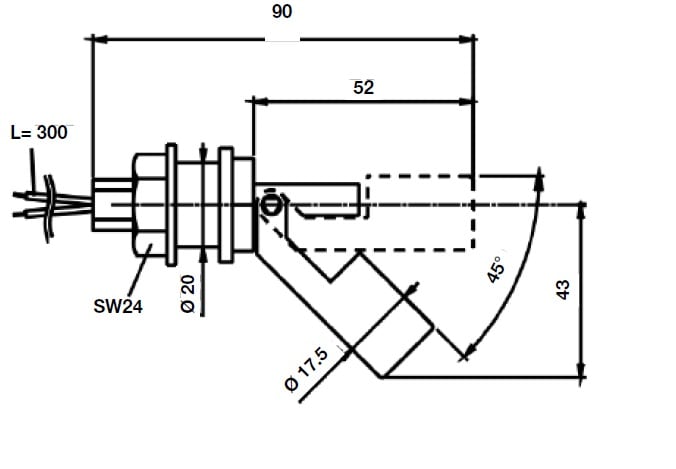 Sensore magnetico di livello, a seconda del verso di orientamento con il quale viene montato, può svolgere sia la funzione NA che quella NC.