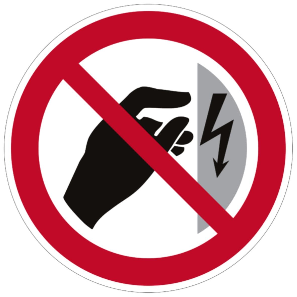 ETICHETTA ADESIVA DI DIVIETO PS-TA, SIMBOLO VIETATO TOCCARE TENSIONE PRESENTE, DIMENSIONE 25mm