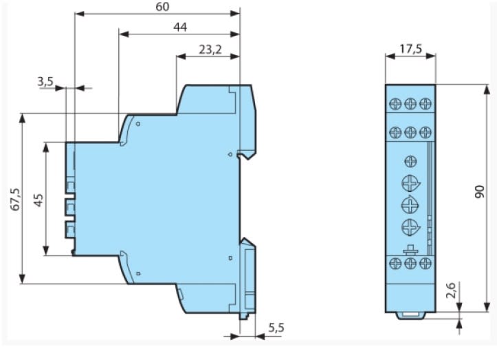 Temporizzatore Multifunzione con funzioni: Ad: Eccitazione ritardata tramite comando (non resettabile); Ah: Intermittente ciclo unico tramite comando (non resettabile); N ''Cane da guardia''; O ''Cane da guardia ritardato''; P Impulso fisso ritardato; PtImpulso ritardato totalizzatore; TL Contattore bistabile; Tt Contattore bistabile temporizzato; W Temporizzazione all'eccitazione a fine impulso di comando