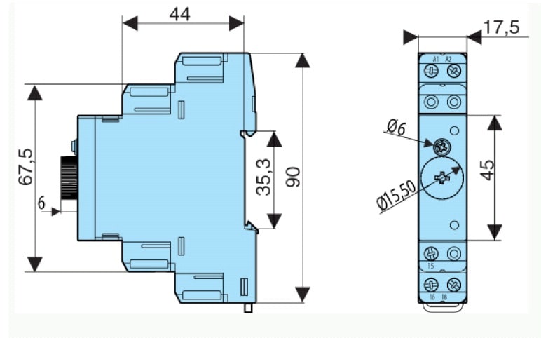 Temporizzatore Multifunzione con funzioni: A Ritardo alla messa sotto tensione; At Totalizzatore; B Calibratore; C Temporizzazione all'apertura ritardo alla diseccitazione; D Pulsante con inizio pausa; Di Pulsante con inizio lavoro; H Temporizzazione alla messa sotto tensione - contatto di passaggio; Ht Totalizzatore H; Pe Contaimpulsi ritardato; W Temporizzazione all'eccitazione a fine impulso di comando