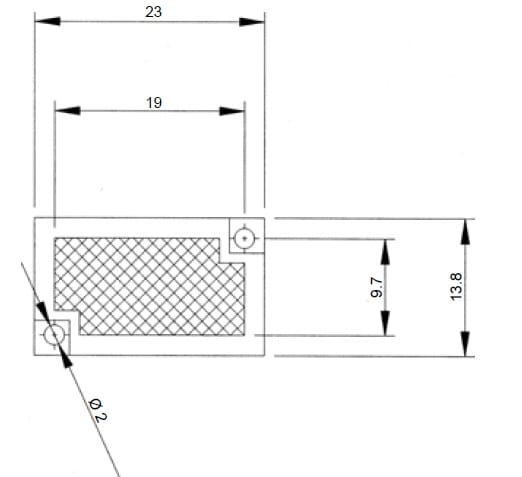 Riflettore a microprismi 9,7 x 19 mm con supporto 13,8 x 23 mm.
