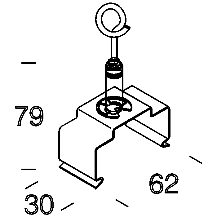 In acciaio. Per la sospensione con catena. Completo di attacco al canale acc. 6051. Utilizzarne almeno 2 per canale. Carico max 30 Kg.