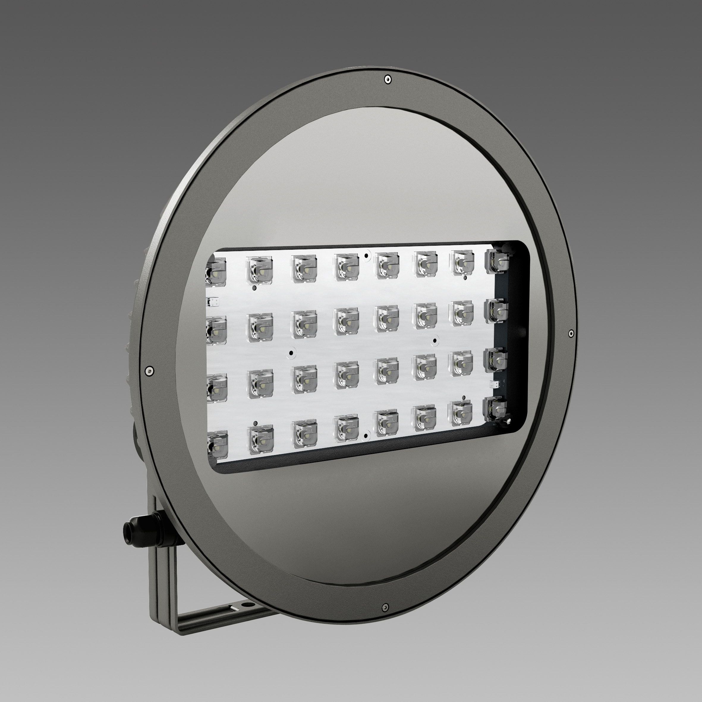 Corpo: In alluminio pressofuso con alette di raffreddamento integrate nella copertura. Diffusore: vetro trasparente sp. 4mm temperato resistente agli shock termici e agli urti (UNI-EN 12150-1 : 2001). Dotazione: dispositivo automatico di controllo della temperatura. Resistenza ai picchi di tensione della rete mediante diodo di protezione. Equipaggiamento: Completo di connettore stagno IP67 per il collegamento alla linea. Valvola anticondensa per il ricircolo dell’aria. Dissipatore: Il sistema di dissipazione del calore è appositamente studiato e realizzato per permettere il funzionamento dei LED con temperature inferiori ai 50° (Tj = 85°) garantendo ottime prestazioni/ rendimento ed un’ elevata durata di vita. Possibilità di scegliere la corrente di pilotaggio dei LED. La scelta di una corrente più bassa aumenterà l’efficienza e quindi migliorerà il risparmio energetico. LED: ottiche in PMMA con alta resistenza alla temperatura e ai raggi UV. Tecnologia LED di ultima generazione Ta-30+40°C vita utile 80.000h al 70% L70B20. Classificazione rischio fotobiologico: Gruppo di rischio esente secondo le EN62471. LED white 94W 12960 @ 700mA-4000K-CRI 70. Colore: Grafite.