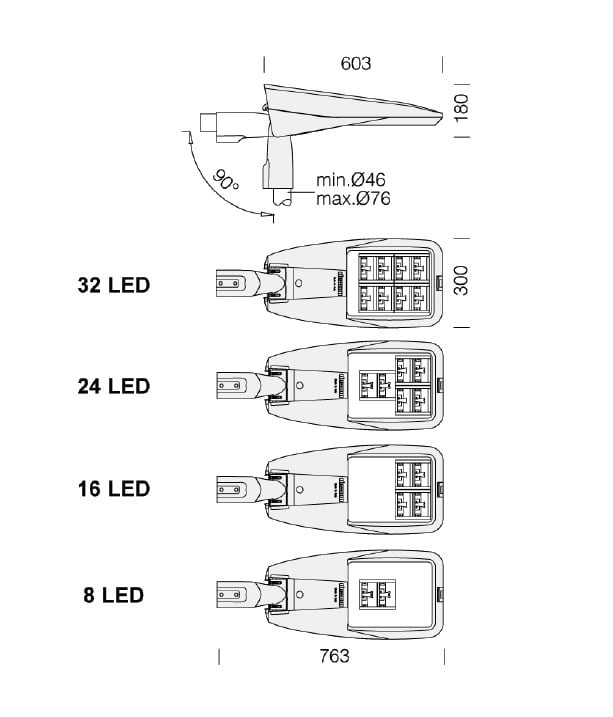 Corpo e coperchio: stampati in alluminio pressofuso e disegnati con una sezione aerodinamica a bassa superficie di esposizione al vento. Alette di raffreddamento integrate nella copertura. Diffusore: vetro extra-chiaro sp. 4mm temperato resistenteagli shock termici e agli urti (UNI-EN12150-1: 2001). Cablaggio: di serie a 700mA con driver in doppio isolamento 220-240V 50/60Hz. Sistema ottico: in alluminio rivestito con argento ad altissima purezza 99.99% con procedimento sottovuoto (PVD). La modularità del design ottico, le soluzioni adottate per il design dei circuiti elettronici ed il controllo ottimale delle temperature di lavoro dei componenti elettronici fanno di Sella un prodotto professionale, flessibile ed affidabile, in grado di garantire enormi vantaggi applicativi nelle diverse soluzioni di installazione. Lampada: LED 118W 16200Lm 4000K. fascio ST. Colore: Argento sabbiato.