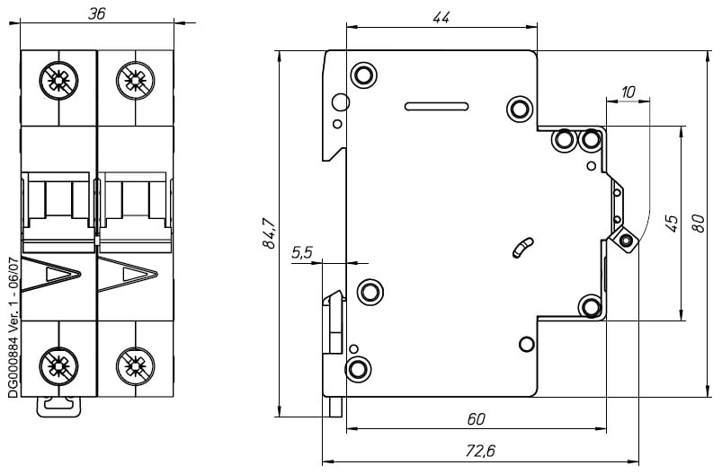 Interruttori automatici con sganciatore magnetotermico per protezione da sovraccarico e cortocircuito. Conformi sia alla norma IEC/EN60898, per uso domestico o similare, sia alla IEC/EN60947-2, per uso industriale. Sezionamento visualizzato mediante indicatore dello stato dei contatti (finestrella rosso/verde). Conforme alla prescrizioni per il sezionamento elettrico sicuro con distanza tra i contatti > 4mm. Leva a sgancio libero. Alimentabile sia dall'alto che dal basso. Leva di colore nero. Clip di fissaggio su guida DIN tristabile. Possibilità di piombatura della manovra. Morsetto doppio sia a mantello per cavo che a gola per sbarretta, sia sopra che sotto