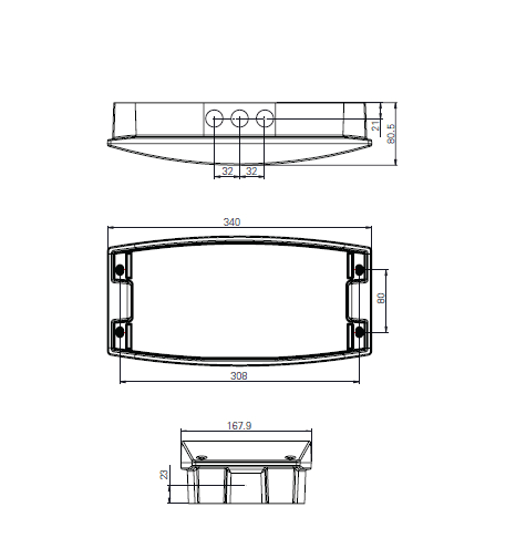Apparecchio per illuminazione di emergenza con elevato grado di protezione IP65. Corpo in policarbonato oppure in alluminio pressofuso RAL9016. Diffusore in policarbonato trasparente. 24W Siimmetrica. 1h SE/SA. 740 lm/900 lm. con corpo in policarbonato