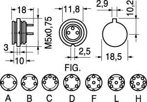 PRESE SCHERMATE A NORME DIN DA PANNELLO. N.Poli: 5. CORPO:ottone. ISOLAM.:resina fenolica. TERMINALI:a vite.