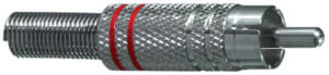 SPINE COASSIALI RCA NICHELATE CON MOLLA GUIDACAVO. CORPO:ottone. ISOLAMENTO:bachelite. PER PRESE PANN.:4/2049. Col.Anelli: Rossi.