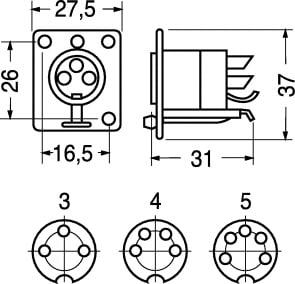 PRESE PROFESSIONALI PER MICROFONO DELTRON. Nuova serie professionale per applicazioni audio-video con aggancio per il bloccaggio. Fermacavo interno per bloccaggio cavi da 2mm ÷ 8,5mm. Realizzate con un nuovo disegno ergonomico senza l'uso di viti per il fissaggio. PORTATA 4 POLI:10 A. TENS. LAVORO:250 V. TENS. DI PROVA:1500 V. RES. CONT.:3 mOHM max. TEMP. LAV.:-30°C ÷ +80°C. CORPO:zinco pressofuso. ISOLAMENTO:noryl. CONTATTI:ottone argent. Finit. : brunita.