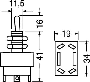 DEVIATORE 2 SCAMBI 3 POSIZIONI. PORTATA:10 A - 250 V o 15 A - 125 V. CORPO:resina termoindur. CONTATTI:argento. TERMIN.:faston passo 6,35. PER FASTON:4/11520. COPRI FASTON:4/11530. CAPPUCCIO:4/6710.