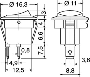 INTERRUT. MIN. BILANC. 2 P. NERO. PORTATA:3 A-250 V / 6 A-125 V. TENS. PROVA:1500 V / 1 min. CORPO:nylon rinf. vetro. CONTATTI:ottone nichel. TERMIN.:a saldare. FISSAGGIO:autobloccante.