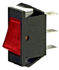 Interruttore luminoso a bilancere, corpo in abs nero, contatti in argento, fissaggio a pannello autobloccante, terminali faston passo 6,35, temperatura di esecuzione -20°C +125°C