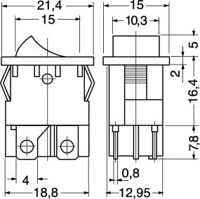 INTERRUTTORI BIPOLARI MINIATURA. PORTATA:6 A - 250 VCA. CORPO:nylon rinf. vetro. CONTAT.:ottone nichelato. TERMIN.:faston passo 4,80. FISSAGGIO:autobloccante. PER FASTON:4/11525. COPRIFASTON:4/11560. Col.Tasto: Nero.