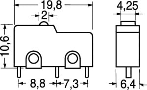 DEVIATORE MINIATURA. PORTATA:3 A – 125 V. FORZA AZION.:130 gr. CORPO:pvc. CONTATTI:ottone argent. TERMINALI:per C.S.