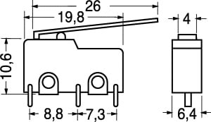 DEVIATORE MINIATURA. PORTATA:3 A - 125 V. FORZA AZION.:28 gr. CORPO:pvc. CONTATTI:ottone argent. TERMINALI:per C.S.