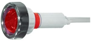 Segnalatori chiusura stagna. • Ghiera: cromata • Corpo: macrolon • Terminale: cavetti da 25 cm • Tensione: 12V CC/CA