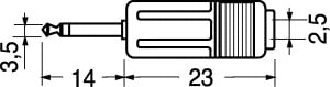 ADATTATORE DA SPINA 3,5 STEREO A PRESA 2,5 STEREO. MANICOTTO:bachelite. PER PRESE:4/3102 - 4/3220. SPINE:4/2990.
