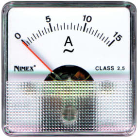 AMPEROMETRI A FERRO MOBILE PER MISURE IN CA. Con dispositivo d'azzeramento. MATER.:resina trasp. antiurto. CLASSE:2,5. Portata: 25 A ÷ 0 A.