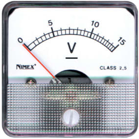 VOLTMETRI A BOBINA MOBILE MISURE IN CC. Con dispositivo d'azzeramento. MATER.: resina trasp. antiurto. CLASSE:2,5. Port. V: 30 V ÷ 30 V ÷ 0 V.