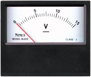VOLTMETRI PROFESSIONALI A BOBINA MOBILE MISURE IN CC. Con nucleo centrale e dispositivo d'azzeramento. MATER.:resina trasp. antiurto. CLASSE:2,0. Port. V: 30 V ÷ 0 V ÷ 30 V.