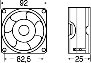 VENTILATORE ASSIALE SUPPORTO CUSCINETTI 92x92x25.4 mm. ELICA:poliestere termopl. TEMP. LAV.:-20°C÷+80°C. FATT. RUMORE:32 dB. GIRI MIN./RPM:3000. CFM:59. GRIGLIA:45/9653. Tensione: 12V.
