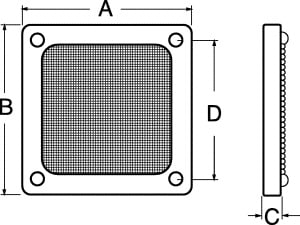 FILTRI ARIA IN ALLUMINIO. GRIGLIA:alluminio. FILTRO:acciaio inossidabile. PER VENTILATORI:serie 45/9588. P/n Fornit.: M1.