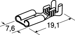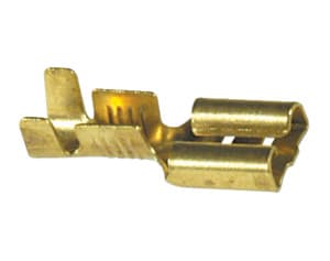 FASTON FEMMINA DIRITTO PASSO 6,3 mm AMP SERIE 250. MATER.:ottone stagnato. TEMP. LAV. MAX:110°C. PER TAB 6,3x0,8 mm. SEZIONE CAVO: A =0,3÷0,8 mm². B =0,8÷2,5 mm². DIAMETRO ISOLANTE: A = 2,3÷3,3 mm. B =3,0÷4,3 mm.COPRIFASTON:98/73100 98/73205. P/n Fornit.: 181902-1.