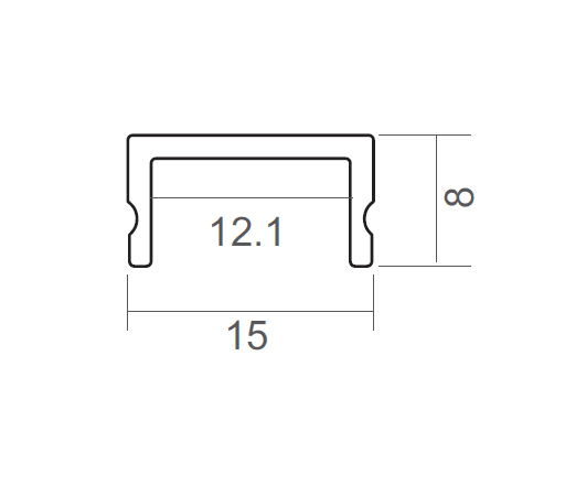 Profilo in estruso di alluminio per l'installazione a plafone per Proline 1508. IP20. Classe III. Dimensione: 1000x15x8mm.