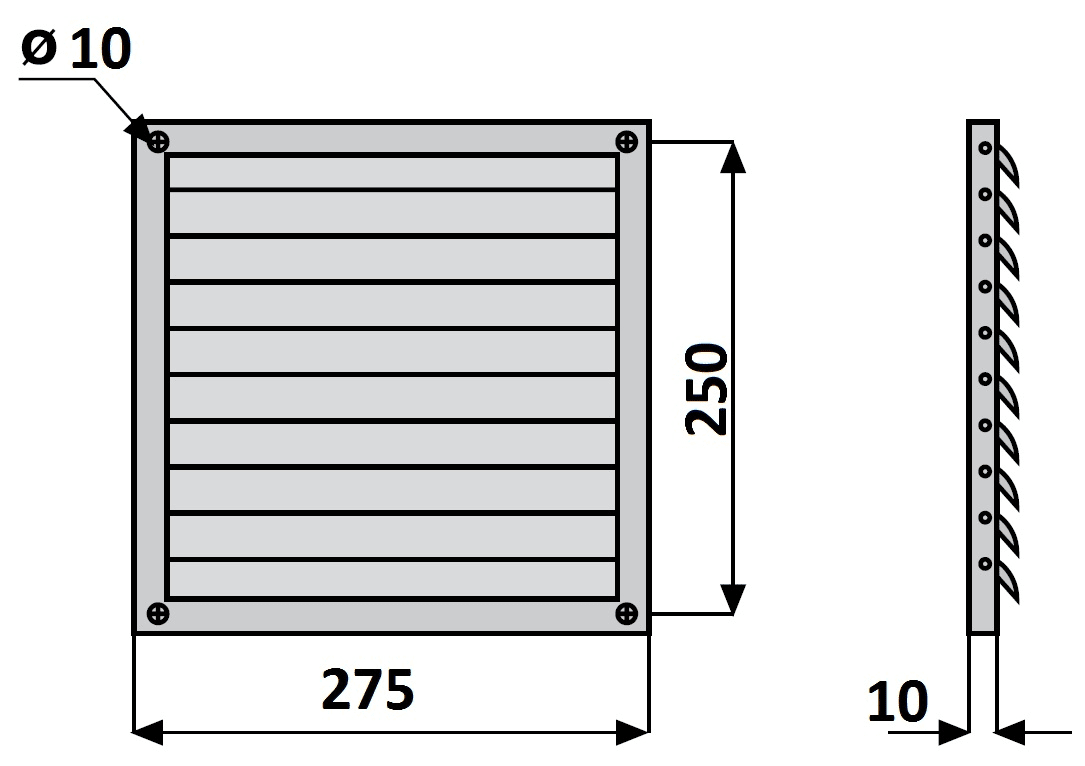 • Montata all’esterno, si apre ad apparecchio acceso e si richiude per gravità ad apparecchio spento • Evita l’ingresso di vento, pioggia o volatili • Telaio in acciaio verniciato con polveri epossidiche • Alette in PVC rigido.