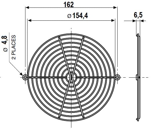 Griglia metallica per ventole, in filo d'acciaio AISI C1010 con finitura nichel-cromo
