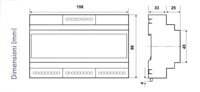La centralina elettronica per la rivelazione di fughe di gas per ambienti industriali è adatta al controllo ed alla segnalazione di concentrazioni pericolose in aria di gas metano, GPL e monossido di carbonio. •Tensione di alimentazione 12Vac/dc ± 10%.•Assorbimento con 1 sonda circa 160mA (320mA). •Assorbimento con 4 sonde circa 280mA (920mA). •Collegamento con n.2 morsetti da 2,5 mm². •Ingresso alimentazione da fusibile 1A 5x20mm. •4 Ingressi per sonde S81, S82, S83, o sonde ATEX S84, S85, S86 (diversi tipi di gas). •Collegamenti sonde n.3 morsetti da 2.5 mm² per sonda: C (-12...24V); S (+4...20mA); A (+12...24V). •Max lungh. di collegamento 50 m per ogni sonda. •Sezione dei 3 conduttori: 1,5 mm². •Uscita di allarme: n.1 relè con 1 contatto SPDT 8A 250Vac. •Uscita di anomalia: n.1 relè con 1 contatto SPDT 8A 250Vac. •Collegamenti uscite: n.3 morsetti da 2.5 mm² per relè C-NC-NO. •Rispondenti alle norme EN 61779-1-4; CEI 216-5/1; EMC 89/336/CEE; EN 50270. •Fissaggio a retroquadro su barra ad Omega DIN EN50022. •Può essere installata a fondo quadro o in quadri modulari DIN. •Per garantire il corretto grado di protezione dell'apparecchiatura è necessario installare l'apparecchiatura in un quadro elettrico costruito secondo le norme vigenti per l'ambiente di lavoro ed all'interno del quale può essere alloggiato anche il sistema di alimentazione. •La centralina P82 consente il collegamento fino a 4 sonde modello S81-82-83 o sonde ATEX S84, S85, S86 per la realizzazione di impianti di rivelazione gas in ambienti quali locali caldaie, officine, magazzini, laboratori, etc. con la possibilità di pilotare una elettrovalvola o un dispositivo ausiliario (sirena, lampeggiante, estrattore, etc.) mediante il relè di allarme presente all'interno. •L'installazione di un sistema di rivelazione di fughe gas o di presenza di ossido di carbonio, non esonera dall'osservanza di tutte le regole per l'installazione e l'uso di apparecchi a gas e delle relative norme di sicurezza e disposizione di legge in vigore per questo tipodi impianti. •La centralina deve essere alimentata a 12 Vac/dc. •Per il collegamento delle uscite a relè utilizzare cavi con sezione minima di 1,5 mm². •La logica di funzionamento, selezionabile mediante il Jumper E1, può essere di tipo positivo o negativo. •La centrale segnala il proprio stato di funzionamento tramite i led. •A seconda della logica selezionata mediante il Jumper E1, in situazione normale (assenza di allarme), i led, l'uscita segnalazione anomalia ed il relè, risultano: -logica positiva:led accesi; relè eccitati. -logica negativa: led spenti; relè diseccitati. •Segnalazioni luminose •Segnalazioni acustiche •1 pulsante per reset allarmi e test sonde. •Contenitore in materiale plastico autoestinguente. •Dimensioni 158 x 90 x 58 mm - 9 moduli secondo la norma DIN 43880. •Peso 250 gr. •Grado di protezione IP20; IP40 quando correttamente installato in quadro elettrico. •Temperatura ambiente 0 ÷ 50 °C. •Umidità ambiente ±90% U.R. senza condensa.