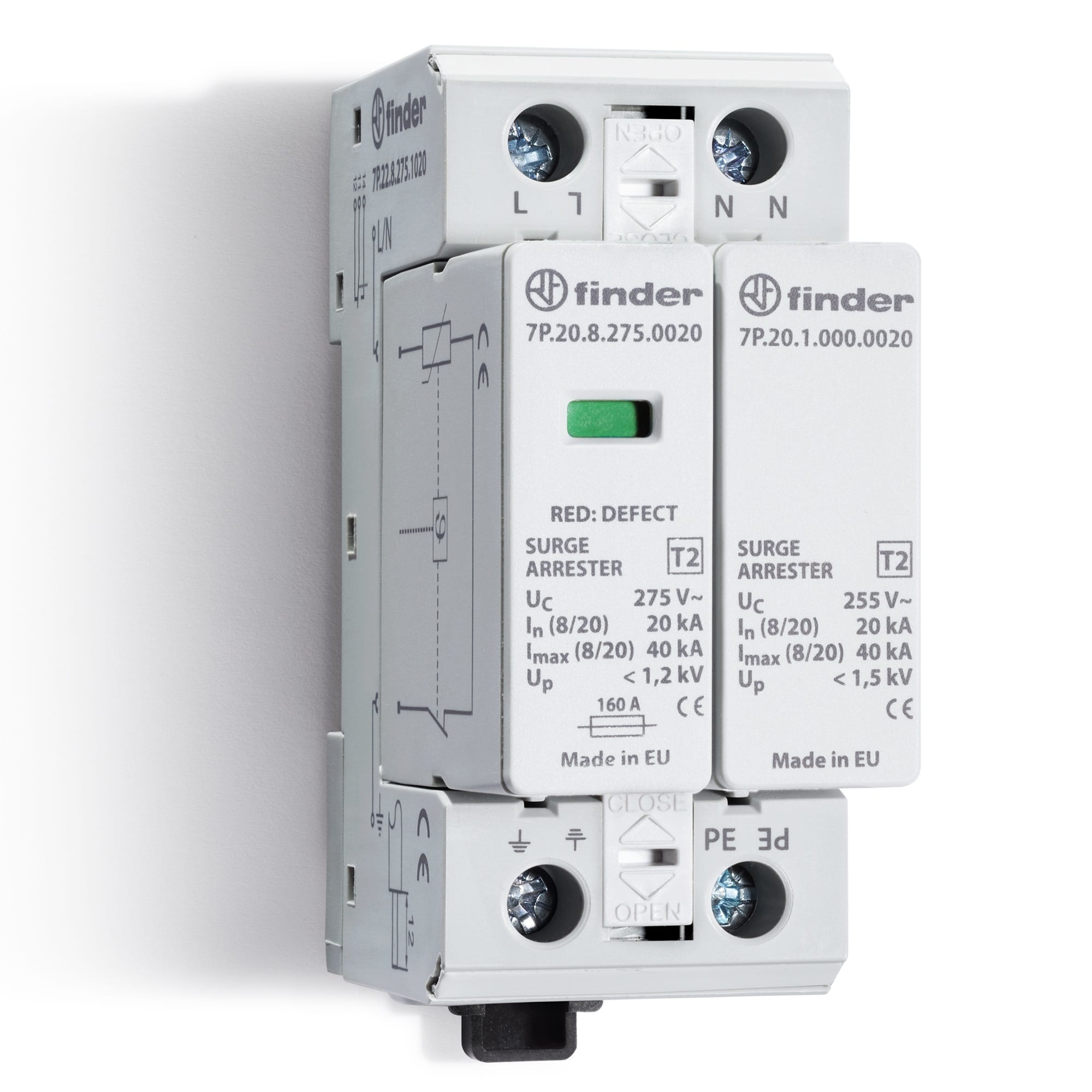 FINDER S.P.A. - FIN7P2282751020 SPD CLASSE2 MONOFASE 2P 275VAC 1+1 20KA
