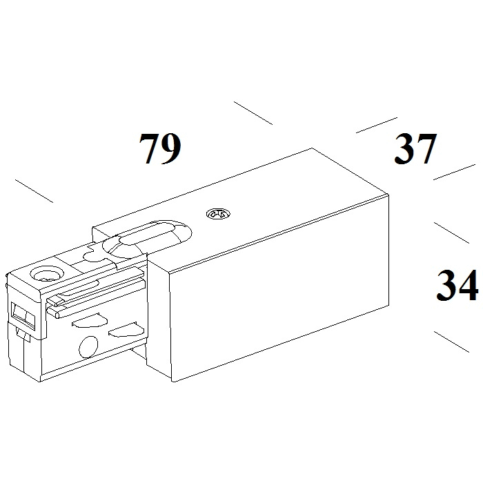 Permette l’alimentazione del binario. Ad innesto rapido con dentino di guida e accessorio per la selezione della posizione fase-neutro. Consente l’ingresso del cavo elettrico sia in testata che nella parte superiore. Utilizzato insieme ai cubi rende possibile la giunzione lineare, l’angolo, la “T” e la croce.