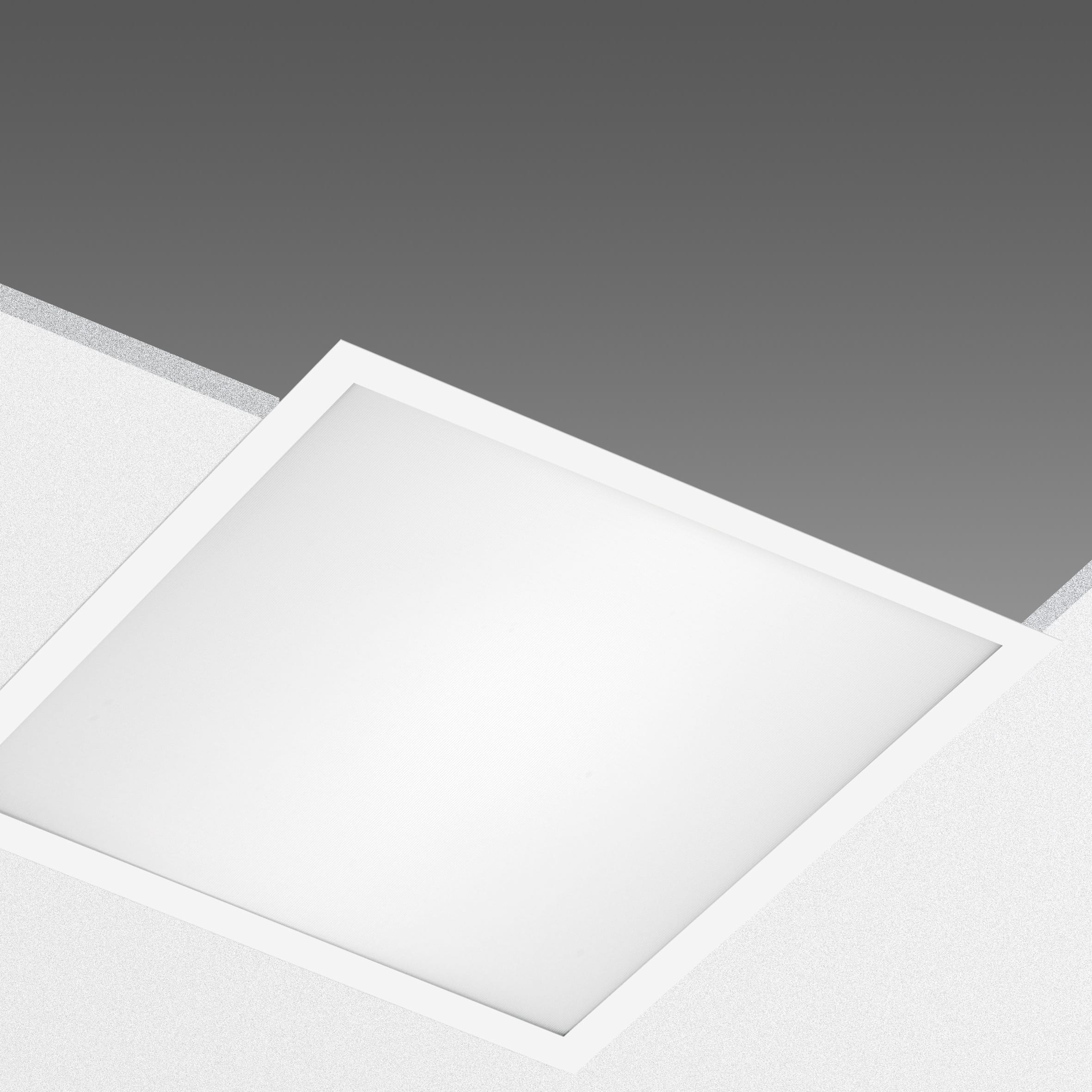 PanelTech UGR<19 - A - controsoffitti. Cornice: in alluminio; completa di telaio per incasso in controsoffitti di cartongesso. Diffusore: in tecnopolimero prismatizzato ad alta trasmittanza. Cablaggio: rapido, non è necessario aprire l’apparecchio. Predisposizione standard con connessione presa-spina sia per l’alimentazione sia per la regolazione 0-10V. Fascio di luce concentrato sul posto di lavoro. Fattore di abbagliamento UGR<19 in ogni situazione. Accensione immediata con assenza di tremolio e assoluta silenziosità di funzionamento. Risparmio energetico di oltre il 50% rispetto alle tradizionali plafoniere a tubi fluorescenti. Efficienza dei led (95%), protezione al surriscaldamento, controllo della corrente e possibilità di lavoro con tensioni non stabilizzate. Speciale progettazione dei circuiti che rende indipendente il funzionamento di ogni led così da non compromettere il funzionamento degli altri. Assenza di emissioni elettromagnetiche e interferenze RF. Nessun rischio per l'ambiente per l'assenza di materiali contenenti mercurio o piombo. Normativa: Prodotti in conformità alle vigenti norme EN60598-1 CEI 34-21, sono protetti con il grado IP40IK05 secondo le EN 60529. Installabili su superfici normalmente infiammabili. LED mod.2835: 3050lm - 4000K - CRI80 - 29W. Classificazione rischio fotobiologico: Gruppo esente. Vita media dei led superiore a 50.000 ore. L70B50. Fattore di potenza: = 0.95. Alimentatore elettronico dimmerabile 1-10V.