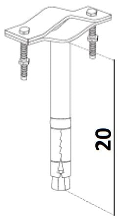 Zanca ad espansione con tubetto Ø18x1,5 mm per pali Ø 25÷45 mm. Zincatura elettrolitica. Con dadi