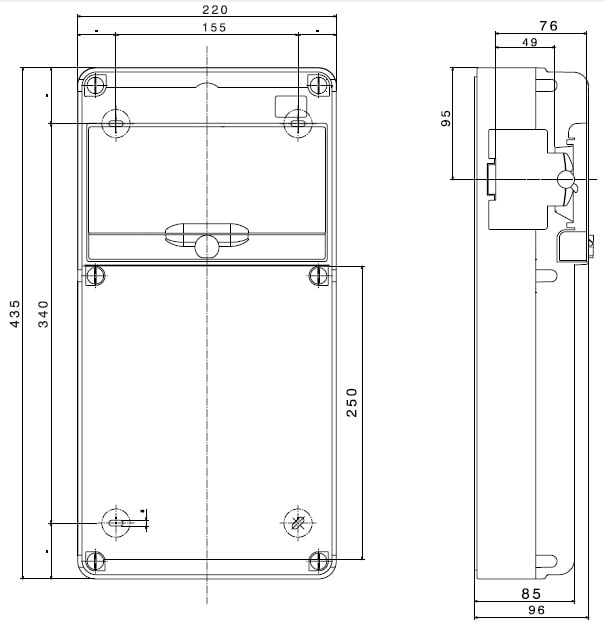 Quadro stagno Q-DIN 10 moduli vuoto in plastica grigio RAL 7035 IP65. • Numero di IEC 309/IB alloggiabili: 2 IEC MAX 3P+T 16 A + 2 IEC 16/32 A • Numero di coperchi ciechi in dotazione: 1 IEC 309 16 A +1 16/32A