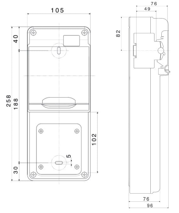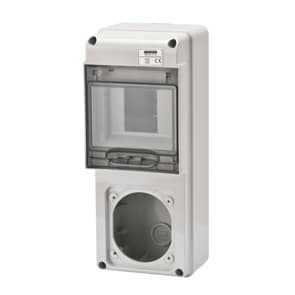 Quadro stagno Q-DIN 5 moduli vuoto in plastica grigio RAL 7035 IP65. • Numero di calotte: 1 IEC 309 16A IP44/67