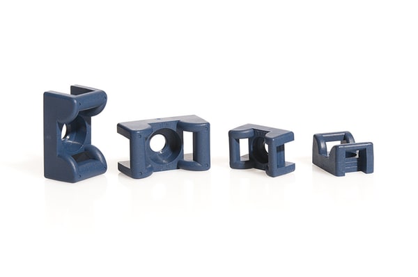 Di colore blu per una facile detectabilità visiva. Forma ricurva per una aderenza ottimale al cavo. Facili da installare con una vite o rivetto. Ottima tenuta, soprattutto in aree soggette a forti vibrazioni. Rilevabili al metal detector e ai raggi X - ideali l'industria alimentare e farmaceutica. La distribuzione uniforme delle particelle metalliche garantisce una perfetta detectabilità. Riducono drasticamente il rischio di contaminazione di prodotti alimentari. Ideali per i processi di controllo qualità nell'industria alimentare. Le basette MCKR con forma ricurva sono ideali per tenere in posizione le fascette MCT, anche in applicazioni soggette a forti vibrazioni, quali per esempio macchinari per la lavorazione alimentare e sistemi automatici per il confezionamento.