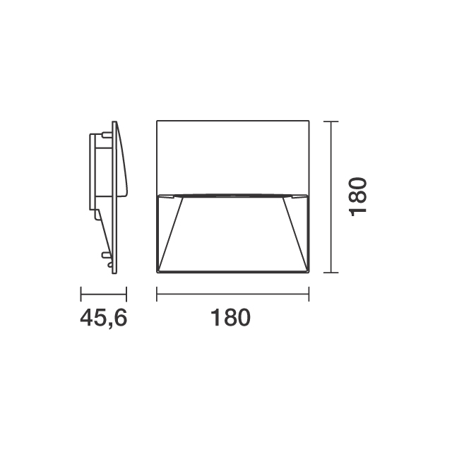 Apparecchio di illuminazione per camminamenti finalizzato all’impiego di sorgenti luminose a LED, ad alto comfort visivo. Installazione ad incasso a parete e ad applique. Costituito da vano ottico con grado di protezione IP66 e controcassa o basetta a parete da ordinare separatamente. Vano ottico e basetta realizzata in lega di alluminio e sottoposti a trattamento di verniciatura a polveri che fornisce un’alta resistenza agli agenti atmosferici e ai raggi UV. Carter di chiusura in materiale plastico nella parte posteriore del vano ottico. Completo di pressacavo in materiale plastico e cavo uscente. Vetro di sicurezza sodico-calcico temprato satinato. Apparecchio senza viti a vista con sistemi anti-vandalismo tramite chiave di apertura per accedere al vano posteriore di cablaggio (fornita nell’imballo). Tutte le viti esterne utilizzate sono in acciaio inox A2. Flusso totale emesso [Lm]: 405. Potenza totale [W]: 11.5. 2700K
