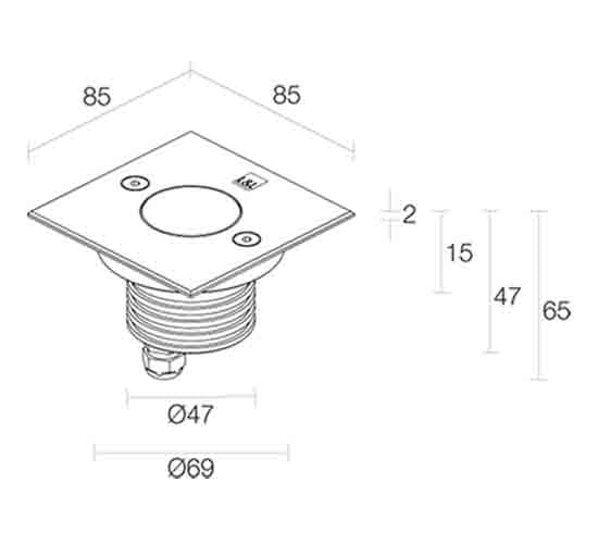 Bright 2.5 - incasso da esterno (non adatto per immersione in piscine e fontane); carrabile fino a 2000 kg; 24Vdc; 1 power LED High Intensity; Ottiche: diffusa; CRI: 80; corpo in acciaio inox AISI 316L, acciaio inox AISI 316L, schermo in vetro extrachiaro temprato sabbiato (versione diffusa); Finiture: acciaio inox; alimentatore non incluso; incluso cavo in neoprene di 1,5 m H05RN-F 2x0,75/0,75 Ø6,3 mm; Grado di protezione: IP68; Grado di resistenza: IK10; Sistemi di protezione: IPS, PID; Temperatura di esercizio: -20°C — +45°C; Temperatura massima apparecchio: 40°C (Ta 25°C); Glow wire test: 960°; Sicurezza fotobiologica: gruppo rischio 1 secondo EN62471:2006; Classe di isolamento: III; Peso: ghiera in acciaio inox: 440 g; Dimensioni: 85x85x63 mm; Accessori: WC0100 Cassaforma, WC0103 Cassaforma, WC0150 Cassaforma, WE0400A Schermo semidiffondente, metà trasparente e metà satinato, WE0400S Schermo antiabbagliamento, metà trasparente e metà serigrafato nero, WF8505 Cavo in neoprene - 5 m H05RN-F 2x0,75/0,75 Ø6,3 mm - IPS, WF8510 Cavo in neoprene - 10 m H05RN-F 2x0,75/0,75 Ø6,3 mm - IPS, WF8515 Cavo in neoprene - 15 m H05RN-F 2x0,75/0,75 Ø6,3 mm - IPS, WF8520 Cavo in neoprene - 20 m H05RN-F 2x0,75/0,75 Ø6,3 mm - IPS, WF8605 Cavo in neoprene - 5 m H05RN-F 2x0,75/0,75 Ø6,3 mm - IPS, WF8610 Cavo in neoprene - 10 m H05RN-F 2x0,75/0,75 Ø6,3 mm - IPS, WF8615 Cavo in neoprene - 15 m H05RN-F 2x0,75/0,75 Ø6,3 mm - IPS, WF8620 Cavo in neoprene - 20 m H05RN-F 2x0,75/0,75 Ø6,3 mm - IPS, WG0100 Molle di fissaggio Ø70mm,WH0201 Nido d’ape ; Classe di consumo energetico: A / A+ / A++. LED 5W 4000K CRI 80 - diffusa.