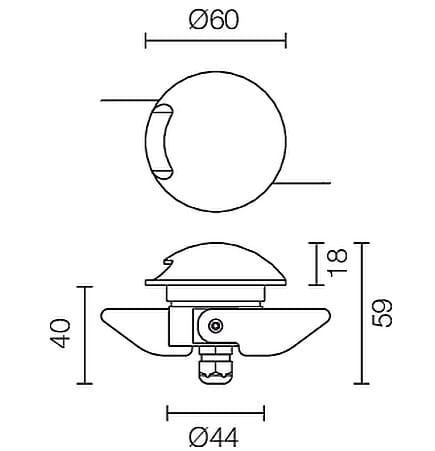 Apparecchio a incasso da esterno o interno; carrabile fino a 500kg; 2W - 350/500mA; 1 power LED; 5000K; CRI: >80; ottica diffusa e radiale, con versione mono-emissione; corpo e ghiera in alluminio verniciato, schermo in PMMA opalino; finiture: alluminio verniciato outdoor grigio; temperatura di esercizio: -10°C +45°C; temperatura vetro: max 40°C (Ta 25°C); dotato di sistema IPS (utilizzare corrugato Ø20 min); grado di protezione contro i liquidi e i corpi solidi: IP67; grado di resistenza all'impatto IK09; sicurezza fotobiologica: gruppo rischio 1 secondo EN62471:2006; montaggio con cassaforma WC1500/WC1501 o a incasso con molle; classe di isolamento III; peso 0,38kg; dimensioni corpo Ø60x60mm; foro d'incasso ø45mm; volume d'ingombro cassaforma Ø80x80mm;collegamento in serie, con cavo 1,5m tipo H05RN-F 2x0,35/0,75 Ø6,5; dimmerazione disponibile mediante alimentatore dimmerabile; accessori disponibili: cassaforma WC1501.