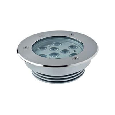 Apparecchio a incasso da esterno o immersione; calpestabile; max 18W - 24Vdc; 4000K; CRI: >80; ottiche: 40°; corpo in Acciaio Inox AISI 316L, ghiera in Acciaio Inox AISI 316L, schermo in vetro extrachiaro temprato con trattamento antigraffio di spessore 6mm, protezione alla sorgente luminosa in vetro borosilicato, guarnizioni siliconiche; finitura: Acciaio Inox lucidato; temperatura di esercizio: -10°C +45°C; temperatura vetro: max 40°C (Ta 25°C); dotato di sistema IPS; grado di protezione contro i liquidi e i corpi solidi: IP68; grado di resistenza all'impatto IK09; Glow Wire Test: 960°; sicurezza fotobiologica: gruppo rischio 1 secondo EN62471:2006; montaggio con cassaforma WC5005; classe di isolamento III; peso 1,50kg; dimensioni Ø201x70mm; Collegamento in parallelo, con cavo 5m tipo H05RN-F 2x0,75; RGB: in serie; dimmerazione disponibile mediante dimmer sulla linea 24Vdc; accessori disponibili: cassaforma WC5105 per installazione su pareti con guaina isolante.