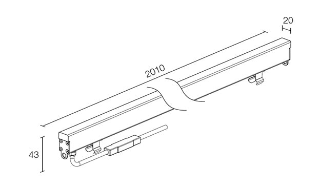 Profilo lineare da interni ed esterni; carrabile fino a 5000kg; 16W - 24 Vdc; power LED SMD; 2800K; luce diffusa; flusso totale: 168 lm/m (2800K); corpo in PMMA bianco opale estruso, testate in acciaio Inox AISI 316L e molle in AISI 301, cassaforma standard in alluminio estruso lega EN AW 6060; cassaforma in acciaio Inox disponibile; NTC controllo della temperatura a bordo; PCB tropicalizzati; temperatura di esercizio: -10°C +45°C; temperatura vetro: max 40°C (Ta 25°C); dotato di sistema IPS; grado di protezione contro i liquidi e i corpi solidi: IP67; grado di resistenza all'impatto IK10; sicurezza fotobiologica: gruppo rischio 2 secondo EN62471:2006; montaggio a incasso (parete, pavimento) con cassaforma; classe di isolamento III; peso: 0,70 kg/m; dimensioni 2010x20x43mm; collegamento in parallelo; incluso 1,5 m di cavo in neoprene H05RN-F 2x0.35/0.75 Ø6.2; dimmerazione disponibile mediante utilizzo di dimmer in linea 24Vdc; accessori: cassaforma in alluminio WC8114; cassaforma per cartongesso WC8314; cassaforma in acciaio Inox WC8154; kit allineamento casseforme in alluminio WN8010, kit allineamento casseforme in acciaio inox WN8011; coppia estrattori WN8001; kit anticaduta WN8101.