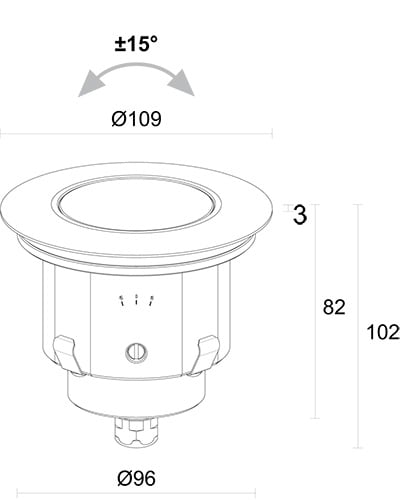 Incasso da esterno; a incasso (soffitto, parete, pavimento). 5W. 3000 K. 34°. 488 lm