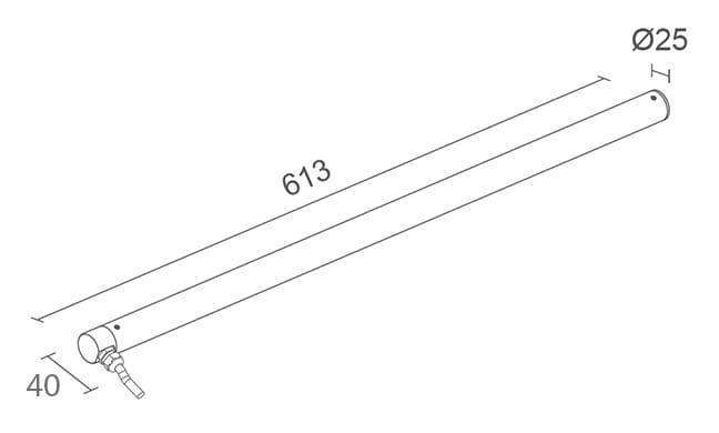 Profilo lineare da esterni e immersione; versione diffusa: 11W - 24Vdc; versione diffusa: 132 mid-power LED; RGB; CRI: >80; ottica: diffusa; flusso totale: RGB: 300lm/m; corpo in acciaio inox AISI 316L; schermo in policarbonato; PCB tropicalizzati; NTC abordo per il controllo della temperatura; temperatura di esercizio: -10°C +45°C; IPS integrato nel pressacavo; grado di protezione contro i liquidi e i corpi solidi: IP68; grado di resistenza all'impatto IK10; sicurezza fotobiologica: gruppo rischio 1 secondo EN62471:2006; montaggio con clips orientabili, viti e tasselli; disponibili clips antivandalo; classe di isolamento III; peso 0,40kg; dimensioni ø25x613mm; collegamento in parallelo; dimmerazione disponibile mediante utilizzo di dimmer in linea 24Vdc; accessori: clips antivandalo WM0502; clips: WM0501.