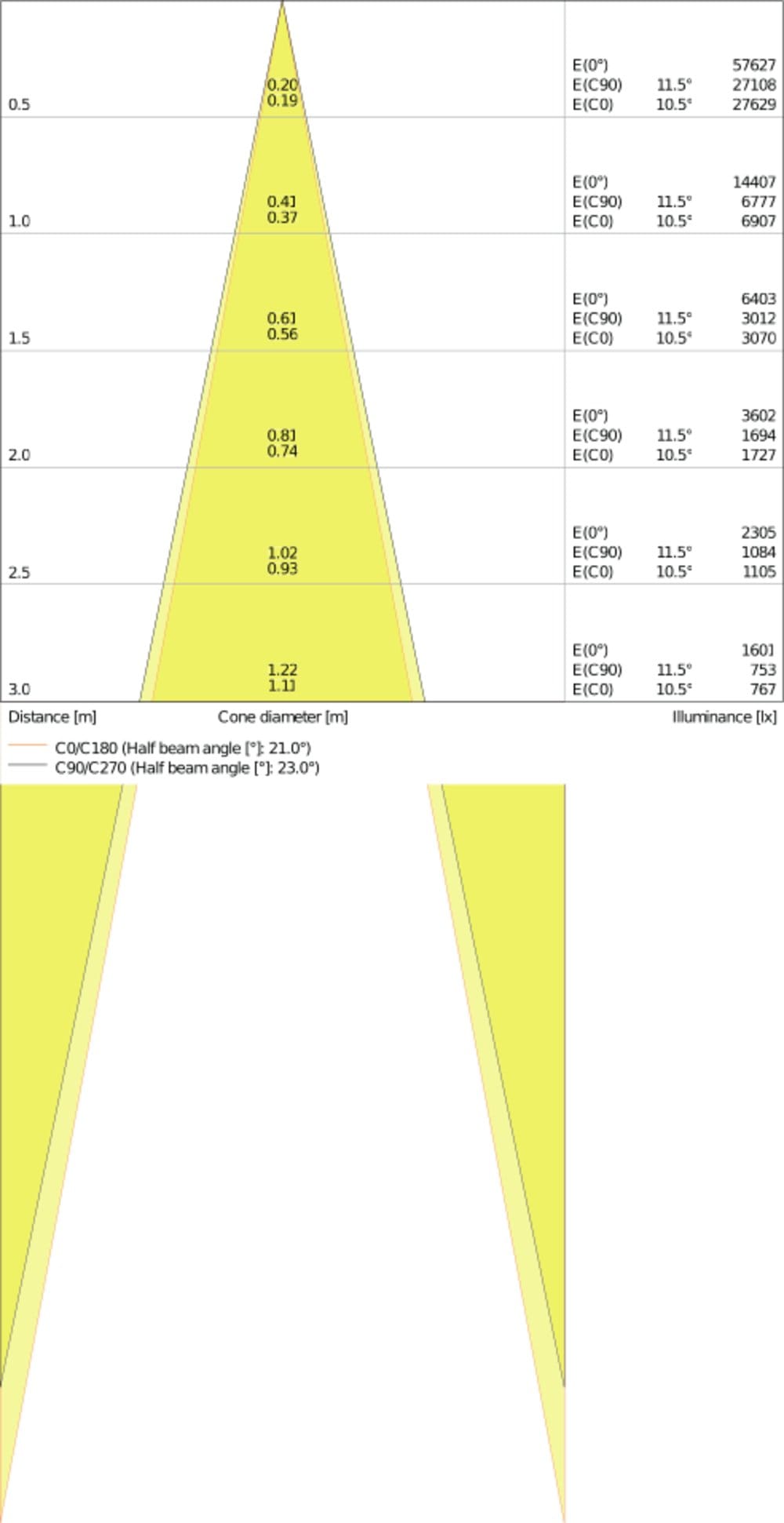 Flusso luminoso calcolato secondo la norma IEC 62722-2-1: