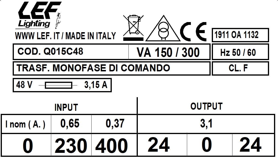 L.E.F. SRL - LEFQ015C48 T.M. 150VA 230.400V / 24.0.24V