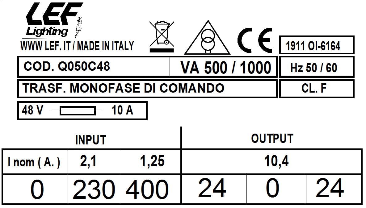 L.E.F. SRL - LEFQ050C48 T.M. 500VA 230.400V / 24.0.24V